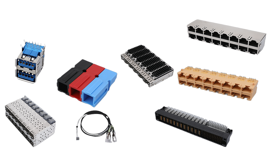 網(wǎng)絡(luò)連接器 (集成RJ45系列和普通RJ45系列)、高速連接器(SFP/QSFP/DSFP/CFP系列)、電源連接器、高速DAC和背板高速線纜組件、BTB連接器、網(wǎng)絡(luò)變壓器、RJ11連接器系列、USB&TYPE-C系列、精密五金件等。公司產(chǎn)品廣泛應(yīng)用于包括“5G/6G”在內(nèi)的網(wǎng)絡(luò)、通訊等行業(yè),并致力于滿足新能源汽車、高端裝備、智能顯示、軌道交通、機器人等高精尖終端領(lǐng)域?qū)B接器市場的需求。